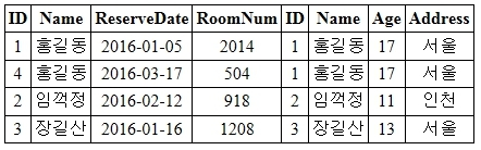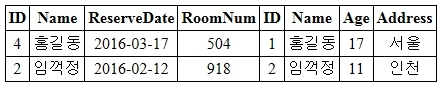 위의 예제에서 두 개의 Name 값이 일치하면, INNER JOIN과 같이 두 테이블의 모든 필드를 그대로 가져옵니다.