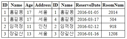 하지만 두 개의 Name 값이 일치하지 않는 경우에는 Reservation 테이블의 모든 필드를 NULL로 표시됩니다.
