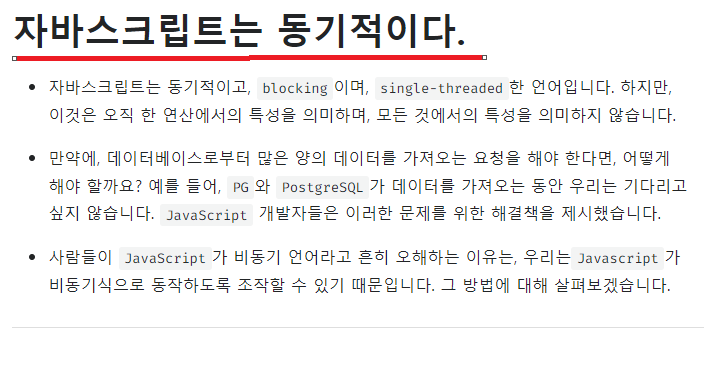 만약 자바스크립트 코드가 동기적으로 동작하게 된다면
