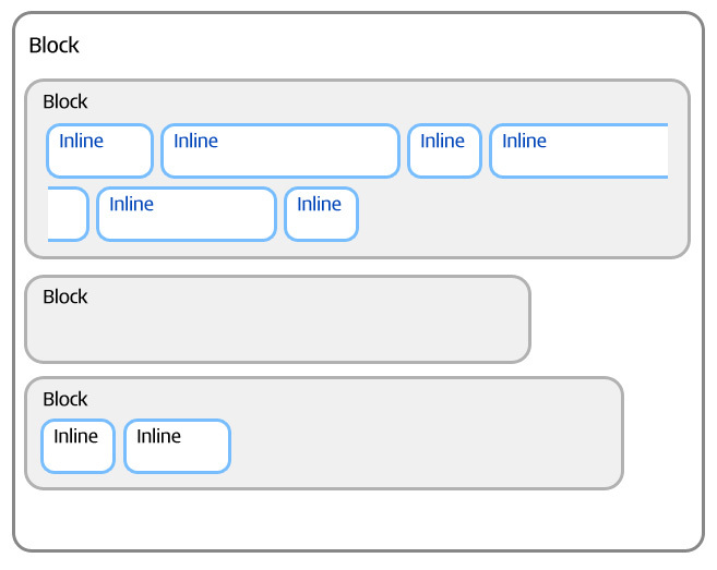 inline : 텍스트 > 인라인은 블록을 감쌀수 없음(유일하게 a태그만 블록을 감쌀수 있음)