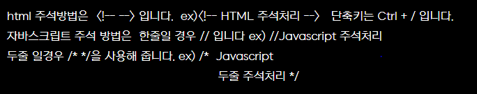 자바스크립트 선언문 안에서 코드가 아닌 설명글을 넣고 싶을 때는 주석 처리를 하면 된다.