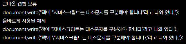 4. 문자형 데이터를 작성할 때는 큰따옴표("")와 작은따옴표('')의 겹침 오류를 주의해야 합니다.