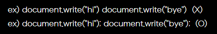 2. 세미콜론을 쓰지 않고 한 줄에 2개의 코드를 작성할 경우 오류가 발생합니다.